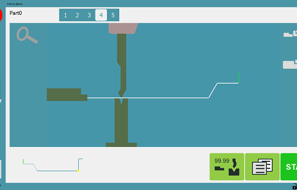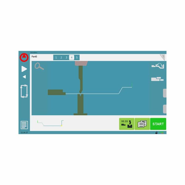 O software offline VisiTouch 2D permite de forma rápida, fácil e eficiente, selecionar as ferramentas, programar as peças, definir as sequências de quinagem e simulares em 2D para verificação de colisões.